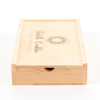 Featuring a two-compartment layout, our 5 x 7 Photo USB Box holds a single USB drive on one side, and includes a choice of 10 images from the album of 5 x 7 mounted prints. Each surface is sanded smooth to the touch and completed with two coats of clear finishing spray.